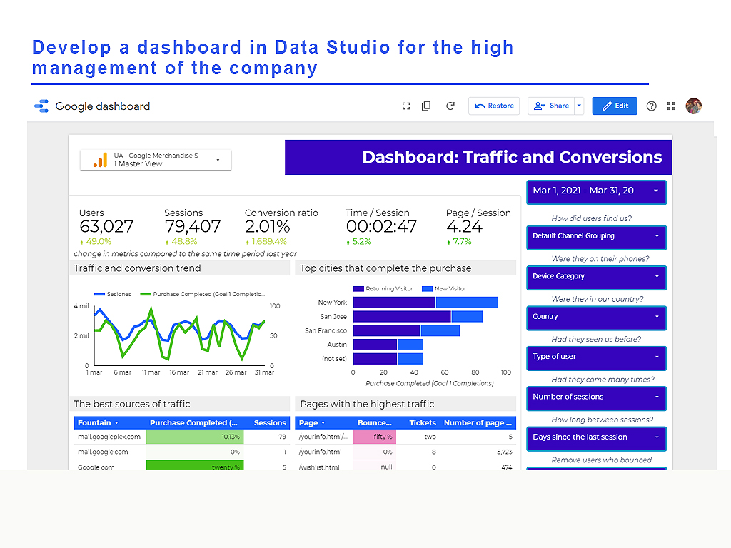 This is a Data Studio Dashboard with a summary of all purchase activity on the site.